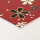 Red background with delicate wavy lines, adorned with black and white flowers in a scattered pattern, exuding a sense of elegance and harmony.