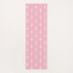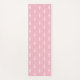Estera de yoga musical con un diseño de arca blanca de trébol. Con un fondo rosa, este artículo es genial para mostrar tu amor por la música en tu próxima sesión de yoga.