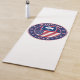 Insignia de Wyoming con bandera de Wyoming y bandera de los colores de EE.UU., forma redondeada. Emblema de Wyoming. Sello de Wyoming. Cheyenne, Casper, Laramie, Gillette, Rock Springs, Sheridan, Green River, Evanston, Riverton, Jackson
