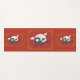 El Yin oscuro y el Yang claro el koi nadan unos a otros creando un Taijitu chino clásico, representando armonía y equilibrio en todas las cosas. Un marco clásico chino en oro enmarca a los dos peces, y un patrón tenue de símbolos chinos para la riqueza, la longevidad, la doble felicidad y la buena fortuna en un fondo rojo completan el diseño.