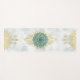 En el centro se exhibe un delicado diseño de mandala, con intrincados motivos verdes y azules, en un ambiente suave y turbio. La disposición simétrica incluye elementos decorativos por encima y por debajo del mandala, creando un equilibrio armonioso.