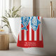 Sumérjase en el encanto marítimo con este diseño costero atrevido de rayas rojas y blancas con sardinas extravagantes azules y personalizable de texto de casa de playa. Perfecto para casas de playa, alquileres de verano o huéspedes amantes del océano que aprecian un toque playero y náutico.