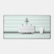 Mostrador moderno con ancla de color gris sobre un fondo de rayas verdes y blancas de menta.