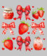 Una colección bonita y vibrante de fresas, arcos de gingham rojos, íconos del corazón, mermelada de fresa y refrescante bebida de fresa, todo ello sobre un fondo negro. Este diseño luce vibraciones dulces, acogedoras y veraniegas con un encantador toque de inspiración rústica.
