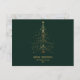 Un estilizado árbol de Navidad de oro sobre un oscuro fondo verde esmeralda. El árbol está adornado con decoraciones minimalistas, como pequeñas estrellas doradas y baubles. Este diseño es a la vez festivo y minimalista, y atrae a los que prefieren un toque de lujo en su decoración de vacaciones.