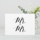 Sencillo y elegante estilo de caligrafía en blanco y negro "Mr. and Mr." signo boda. Este cartel de boda "Mr. and Mr." se ve muy bien impreso en un papel mate, si necesitas algo más tradicional, usa el Laid, Linen o Columned, para un ambiente rústico usa el Artisan Kraft, si quieres añadir un toque de glam, usa el Luxe. Al hacer clic en el botón "personalizar", puede acceder a la herramienta de edición y elegir un color de fondo diferente. Este es un signo de tarjeta plano impreso de 5" x 7", se verá realmente elegante en un marco de imagen.