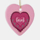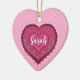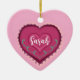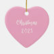 Ilustracion original de un arte folclórico rosa moderno adorno cardíaco con nombre a medida y Navidades 2024 en la parte posterior.