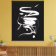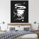 Este lienzo muestra una línea blanca abstracta, expresiva, irregular y ondulada en un formato vertical con aspecto gráfico chino, sobre el fondo negro plano.