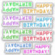 Este diseño de pegatina con temática de cumpleaños muestra el mensaje de bienvenida de cumpleaños "¡FELIZ CUMPLEAÑOS!". Pegatinas como estos podrían ser usados para celebrar el cumpleaños de alguien.