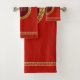 Presenta el estilo de un patricio romano con este elegante set de toallas de baño con motivos decorativos etruscos de fondo rojo, muy popular durante el Imperio Romano. Personalizar el monograma con las iniciales que desee.