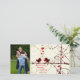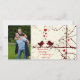 Esto ahorra la tarjeta de foto del anuncio de fecha tiene un diseño moderno de moda de cepas marrones y rojas giratorias. Hay dos pájaros sentados en un cable con corazones flotando sobre ellos. Hay viñas marrones por todas partes. Usted puede fácilmente personalizar los nombres de la novia y del novio junto con la fecha de los futuros nuptuals. com