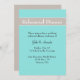 La invitación a la cena, de estilo boda, se realiza en un color azul acuático en la parte delantera, con una franja de taupe en la parte superior y cubriendo la parte trasera de la invitación. El texto en blanco, a través de la banda taupe, dice Cena ensayo. Todo el texto está listo para personalizar su evento.