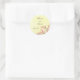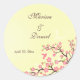 Este pegatina redondo boda, de moda y personalizado, presenta un bonito diseño de flores de cerezo rosa a la derecha, con una silueta de colibrí rosa en medio de las flores. En el fondo, el color amarillo es suave, con un ligero diseño giratorio en la parte inferior. Usted puede fácilmente personalizar el nombre de la novia y el novio junto con la fecha de la próxima ceremonia de boda. ¡Esto sería adecuado para un boda de primavera o verano!