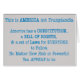 En texto azul dice: "Esto es América, no Trumplandia. América tiene una Constitución, una Carta de Derechos y un conjunto de leyes para que todos sigan, sin importar cuán rico o poderoso parezcas ser."