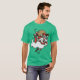 El color es muy bonito al natural, como la foto. El tejido es suave y de buena calidad. Sin defectos en el tintado, ni hilos sueltos o descosidos. Bien la impresión. Los bordes de las letras y el dibujo son nítidos, y el color contrasta muy bien con el de la camiseta.