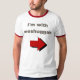 Olvide "mí son con estúpido" esta camiseta judía divertida del humor dice que "estoy con Meshuggah" con una flecha. Seguro para agrietar algunas sonrisas.