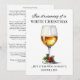Este producto presenta un vaso de vino blanco con bayas de acebo alrededor del tallo y la frase "Estoy soñando con una Navidad blanca... pero si se acaba el vino, ¡el rojo servirá!". Es el diseño perfecto para un amante del vino. En la parte posterior hay un espacio para escribir un mensaje navideño a amigos y familiares.