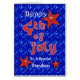 Estrellas rojas mullidas y letras rojas llenas de estrellas en un cielo azul lleno de luces de fuegos artificiales del Día de la Independencia es un divertido auto de saludo para tu nieto, que es una estrella estadounidense. El texto se puede personalizar utilizando las plantillas proporcionadas. Arte original y diseño de Anura Design Studio.