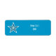 Diseño moderno con una estrella "brillante" azul y blanco sobre un fondo azul. Etiqueta con un diseño de personalizable para que puedas personalizar con tu propio texto, imágenes e ideas. Tenga en cuenta que se trata de una imagen impresa creada con fotografías originales y técnicas digitales, que no brilla ni contiene chispas reales.