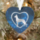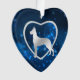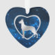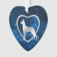 Perfecto para el propietario de Dane, este adorno de bonito Holiday cuenta con una silueta plateada de la imagen de Great Dane Dog rodeada por un cielo nocturno de estrellas azules. La imagen se coloca dentro de una forma de corazón de marco de joya falsa, con el correspondiente borde azul claro de la estrella. La parte posterior del ornamento tiene el mismo fondo azul, y el texto para que se envíe al personalizar.