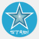 Diseño moderno con una estrella "brillante" azul y blanco sobre un fondo azul. Pegatina con un diseño de personalizable para que usted pueda personalizar con su propio texto, imágenes e ideas. El texto puede cambiarse fácilmente utilizando la plantilla proporcionada o haciendo clic en el botón "Personalizar" para realizar más modificaciones. Tenga en cuenta que se trata de una imagen impresa creada con fotografías originales y técnicas digitales, que no brilla ni contiene chispas reales.