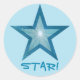 Estrella azul 'STAR!' redonda pegatina azul pálido