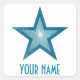 Estrella azul 'Tu nombre' pegatina cuadrado blanco