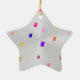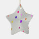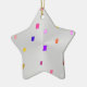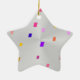 Una estrella blanca y brillante con pequeñas formas de color en naranja amarillo púrpura rosa. Este adorno de cerámica bonito con hilo colgante de oro se vería hermoso en el árbol de Navidad o como un pequeño regalo.