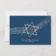Tarjeta de respuesta de Bar Mitzvah con Estrella de David en azul y plata para complementar nuestro conjunto de invitaciones. Plantilla de selección de cena con tres opciones y dos líneas para los nombres de los invitados y espacio para escribir la aclaración de cuántos están realmente invitados.