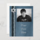 Tarjeta de foto con fondo azul con textura, franjas laterales azules y acento de Estrella de David plateada. Personalice para invitaciones de Bar Mitzvah, tarjetas de agradecimiento o cualquier ocasión.