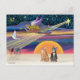 La estrella de Belén ilumina el camino para tres hombres sabios mientras un ángel pregona la gran noticia y dos gatos tabby miran.