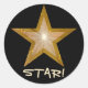 Estrella de "oro", "STAR", pegatina redondo, negro