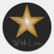 Estrella dorada 'Con amor' negro redondo pegatina