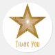 Estrella dorada "Gracias" blanco pegatina redondo