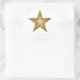 Diseño moderno con una estrella dorada brillante y blanca sobre un fondo blanco. Pegatina con un diseño de personalizable dorado y blanco para que pueda personalizar con su propio texto, imágenes e ideas. El texto puede cambiarse fácilmente utilizando la plantilla proporcionada o haciendo clic en el botón "Personalizar" para realizar más modificaciones. Creado por Jess Perry usando fotografías originales y técnicas digitales.