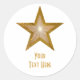 Estrella dorada 'Tu texto' pegatina redondo blanco