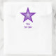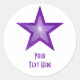 Estrella morada 'Tu texto' pegatina redondo blanco