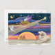 Estrella navidad con un gran Pirineo, paloma y la estrella de Belén iluminando el camino para tres sabios, mientras un ángel anuncia la gran noticia.
