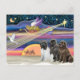 Estrella Navidad con tres Terranova, una paloma, y la estrella de Belén iluminando el camino para tres sabios, mientras un ángel anuncia las grandes noticias.