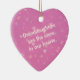 Este es un maravilloso adorno de San Valentín para que un abuelo se lo dé a una nieta. Presenta tu texto personalizado en un fondo de fondo de confeti rosa bonito de corazones y estrellas. Actualmente, la parte delantera dice "Las nietas son las estrellas en nuestros corazones" en rosa claro, con la parte trasera sosteniendo el nombre de su hijo y su mensaje. Todo el texto es totalmente personalizable, así que puedes hacer que diga lo que quieras. Este es un obsequio especial que tu nieta valorará para siempre.