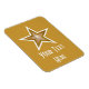 Diseño moderno con una estrella dorada y blanca en un fondo amarillo oscuro. Nevera imán con un diseño de personalizable para que puedas personalizar con tu propio texto, imágenes e ideas. Tenga en cuenta que se trata de una imagen impresa creada con fotografías originales y técnicas digitales, que no brilla ni contiene chispas reales.