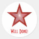 Estrella roja '¡Bien hecho!' blanco pegatina redon
