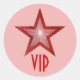 Estrella roja VIP redondo pegatina rosa pálido