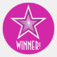 Estrella rosa 'GANADOR!' redonda pegatina rosa