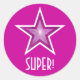 Estrella rosa 'SUPER!' redonda pegatina rosa