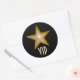 Diseño moderno con una estrella dorada y blanca "brillante" sobre un fondo negro. Pegatina con un diseño de personalizable para que usted pueda personalizar con su propio texto, imágenes e ideas. El texto puede cambiarse fácilmente utilizando la plantilla proporcionada o haciendo clic en el botón "Personalizar" para realizar más modificaciones. Tenga en cuenta que se trata de una imagen impresa creada con fotografías originales y técnicas digitales, que no brilla ni contiene chispas reales.