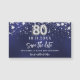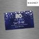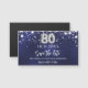 Un moderno y elegante imán Save the Date para una fiesta de cumpleaños número 80. Un fondo azul marino decorado con estrellas de imitación plateadas. Personalice y agregue una fecha y un nombre. El color azul es desigual. El texto: Save the Date se escribe con un gran guión de estilo escrito a mano.