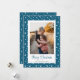 Tarjetas de Navidades de fotos azul personalizado con estrellas y un hermoso título de guión. Personaliza fácilmente estas tarjetas de Navidades de fotos azules con tu imagen y un nombre de familia.