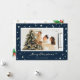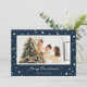 Tarjeta de Navidades modernos de fotos azul personalizado con estrellas de fondo azul oscuro. Personaliza fácilmente esta elegante tarjeta de Navidades de fotos azules con tu imagen favorita, un nombre de familia y un texto.