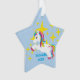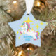 ¡Los unicornios son mágicos y así que son navidad! Consiga este ornamento memorable del recuerdo para ese chica especial en su vida. Tiene estrellas coloridas con un vuelo del unicornio a través del aire con la melena y la cola coloreadas arco iris. Personalice con un nombre y añada el año también. Compruebe hacia fuera los otros artículos en esta colección.